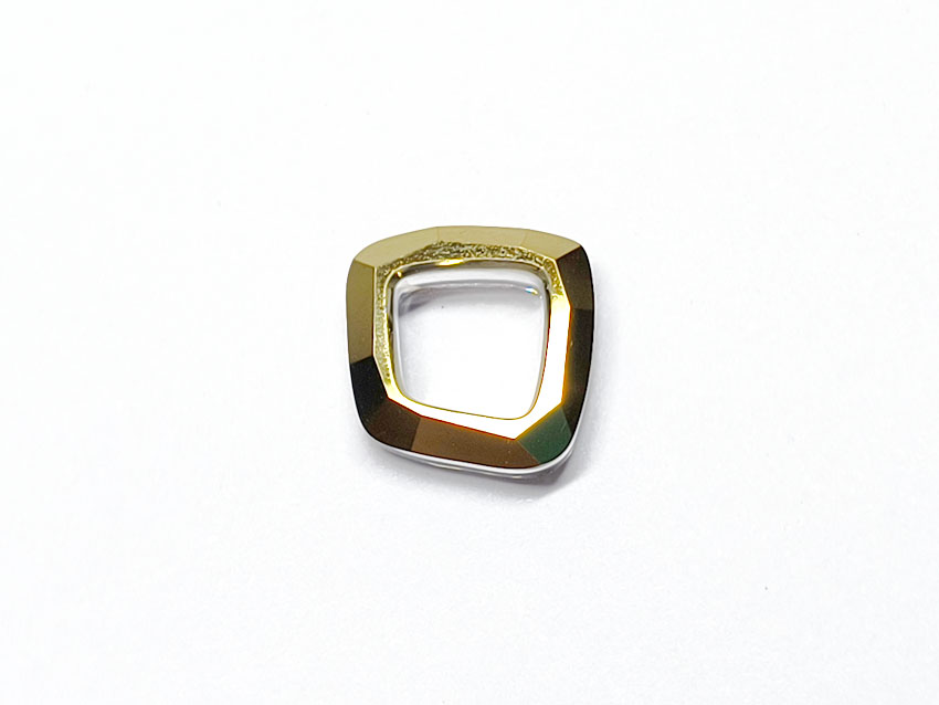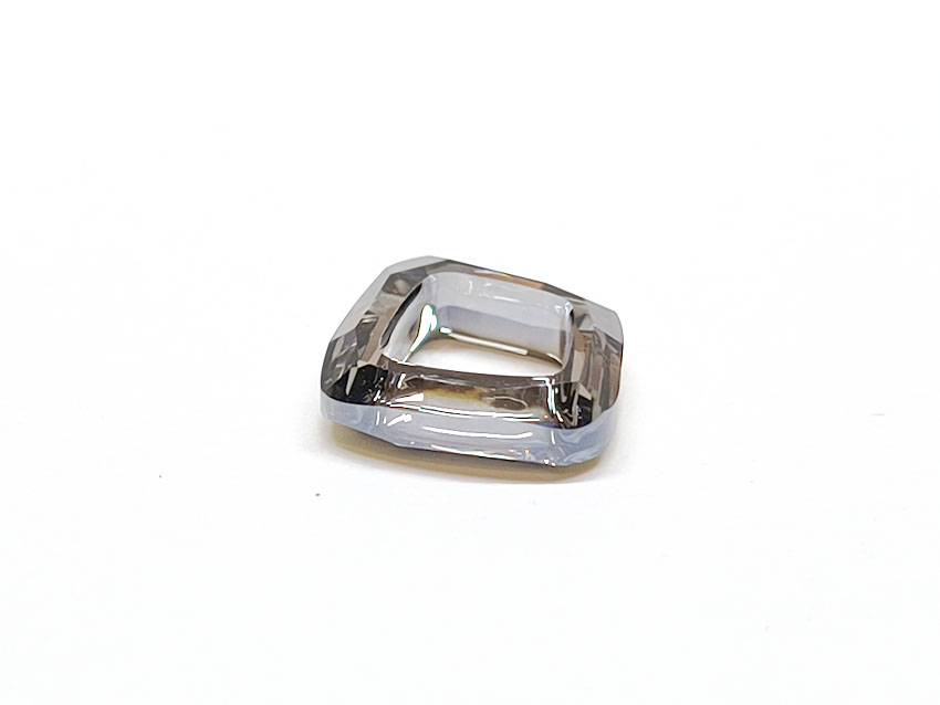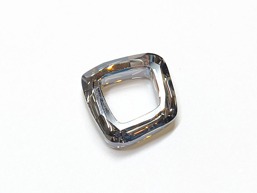 A ‘4437 Cosmic Square’ crystal in dark silver with a copper opaque backing.